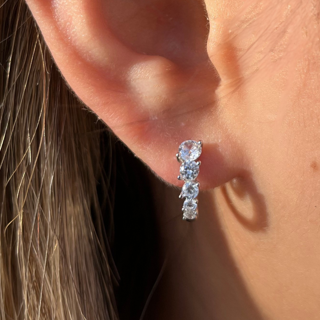 Aretes con 5 zirconias en caída vertical
