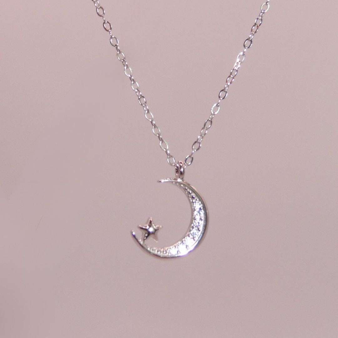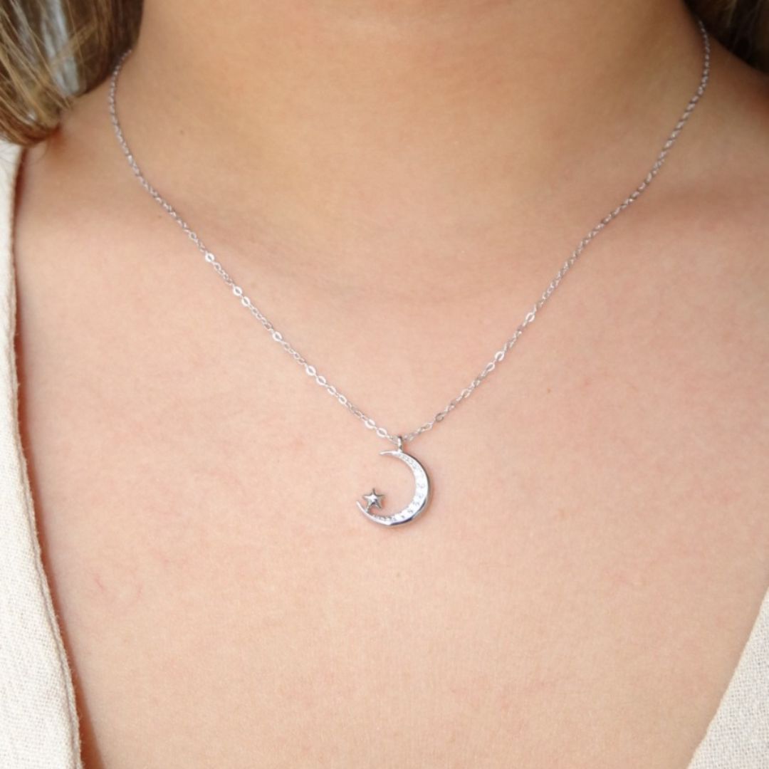 Collar media luna y estrella plateado